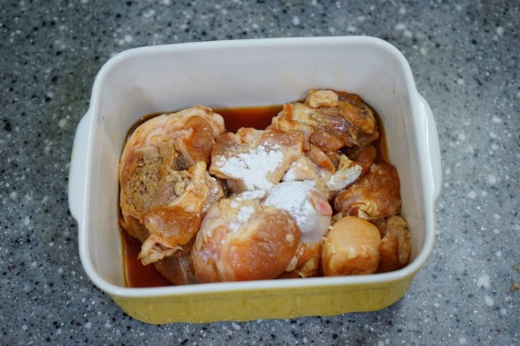 1勺淀粉,四分之一勺盐抓匀腌制1个小时左右