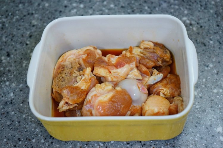 炒好的酱料倒入到排骨上面拌匀再腌制10来分钟,会更入味