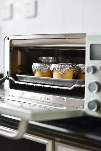 倒入分装杯中,盖上锡纸,放进烤盘,加入烤盘约1/3的水,miniT烘焙功能,下层150度烤60分钟。