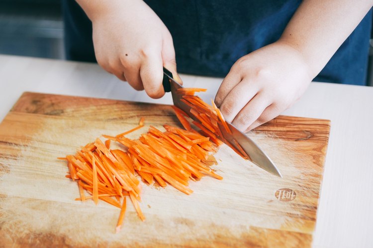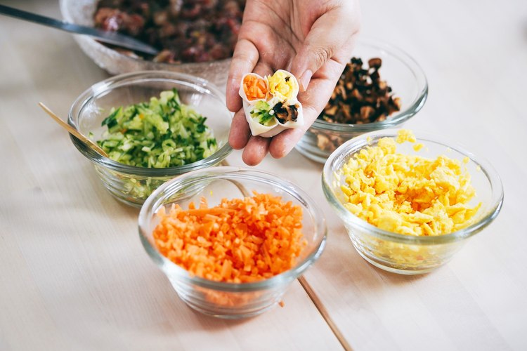 胡萝卜黄瓜分别切丁,香菇泡发切丁,鸡蛋打散加少许油炒熟后搅成碎末状。