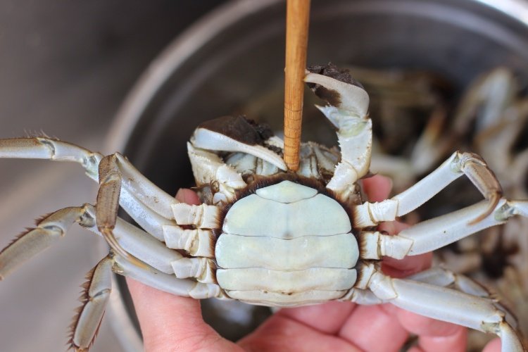 2、蒸螃蟹不掉腿的方法,一是冷水蒸,二是提前用筷子扎螃蟹嘴,把螃蟹扎晕,蒸的过程不挣扎,就不会掉腿;蒸螃蟹应让蟹脐朝上,才能避免流黄。蒸蟹的时间一般为15分钟左右,但这个时间也不是绝对的,因为每个人蒸蟹的习惯不同,以及蟹的大小也有差异。