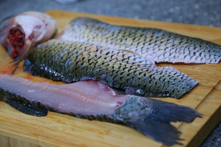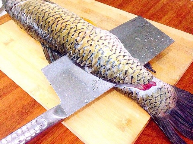 草鱼去鳞,清洗干净,这一步可以在菜市场让卖鱼师傅搞定