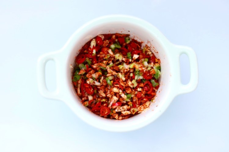 2、做辣酱汁的油一定要烧热,这样才能激发出香辛料中的香味;