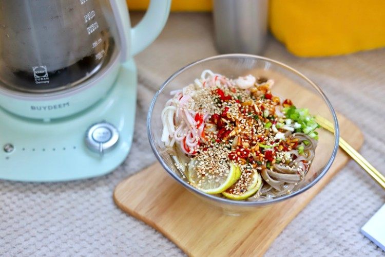 1、煮好的面用冰水降温,可以保持面条Q爽的口感,冰芯要提前装水冷冻5小时以上,如果忘了可以在冰芯壶中直接加入冰块,也有同样效果;