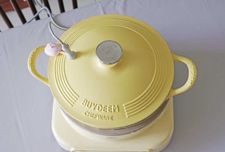 盖上锅盖,插入温度探针,电磁炉选择“低温海鲜”烹饪模式,按开始键开始烹饪。