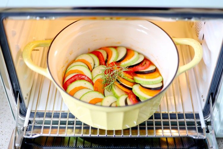 ①这是一道电磁锅和烤箱结合完成的菜,最后把铸铁锅整个送进烤箱完成烤炖。
