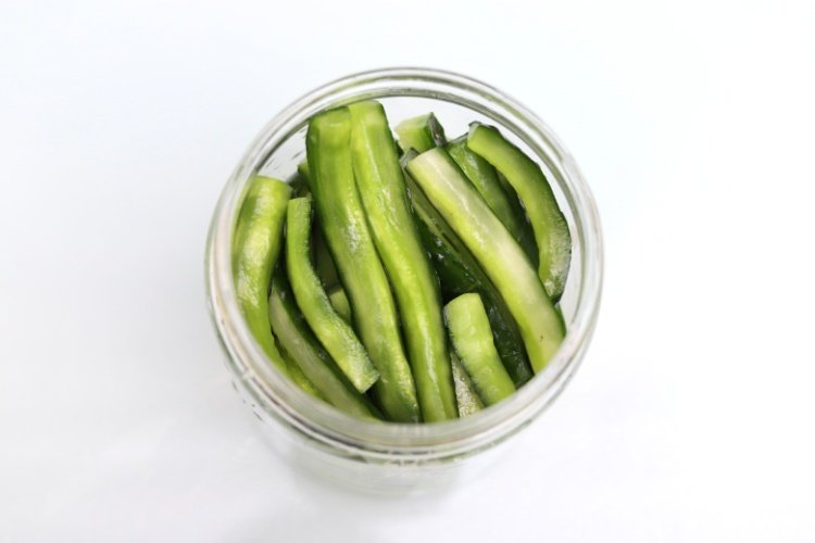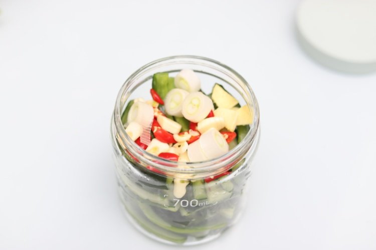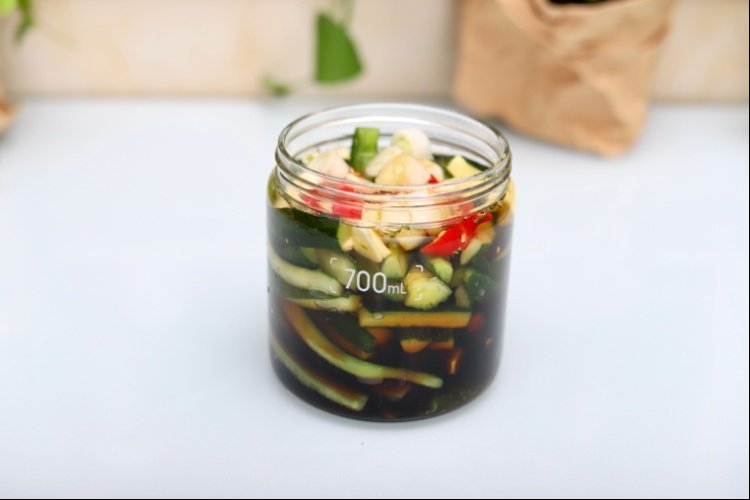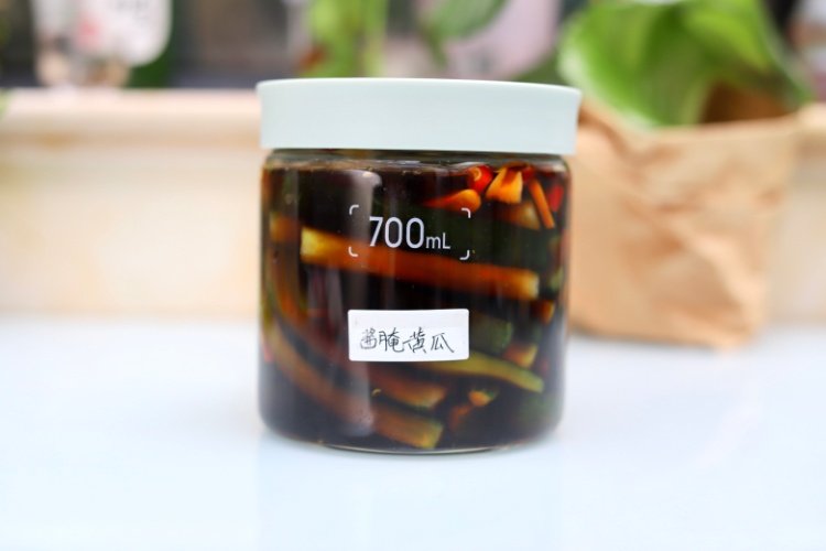3、由于这种酱腌黄瓜的制作时间比较短,基本1-2天就可食用完毕,如果泡的腌水不计划重复使用,也可以省略消毒的步骤哟