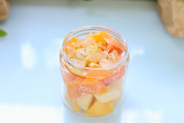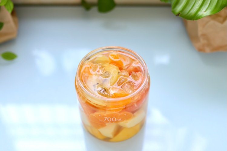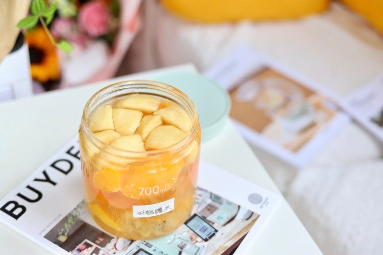 自己在家做的水果罐头,无添加没有防腐剂,糖量还能根据自己喜好控制,吃的安心,做起来也不难,你也试试吧~