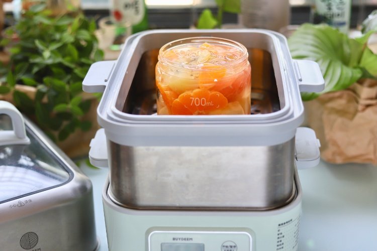 3、出锅后可以趁热吃,但是冷藏后口感更佳。微热的时候盖盖子可以给罐子里形成微微的真空状态,延缓腐败,但是也不要太热的时候盖盖密封,可能会导致造成过大的压力差损坏盖子,甚至是打不开