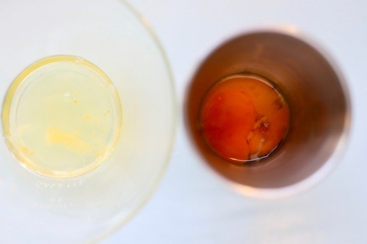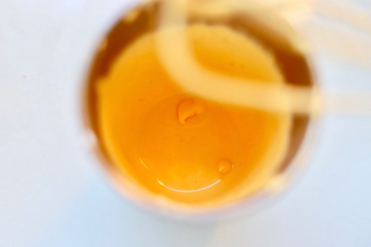 混合好的蛋糊全部倒入蛋白中,继续翻拌混合均匀