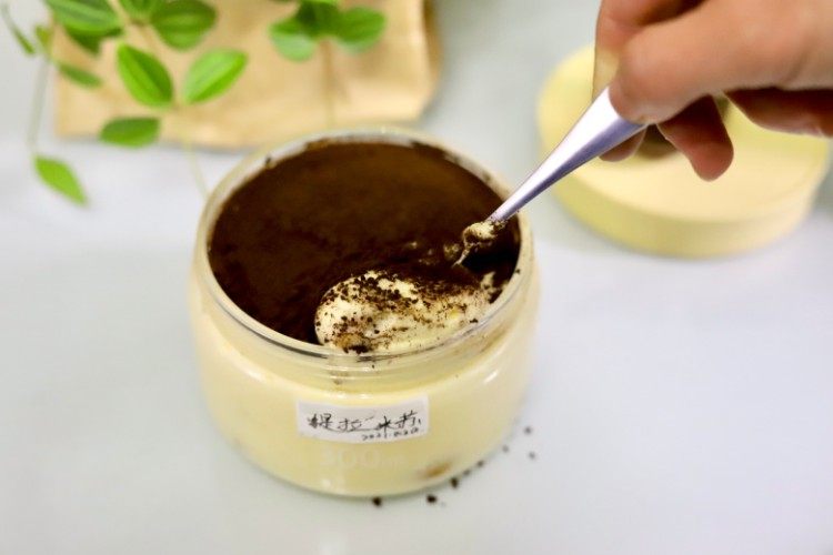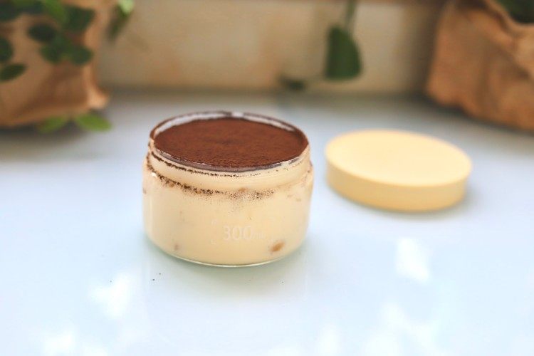 300ml的仓鼠罐中,铺一层蘸了咖啡酒液的手指饼干打底