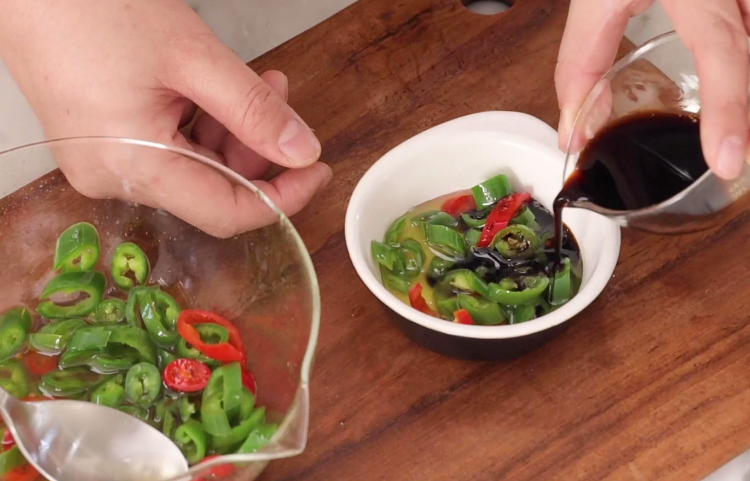 自制蘸料2:辣椒圈20g,海鲜酱油24g,花生油20g