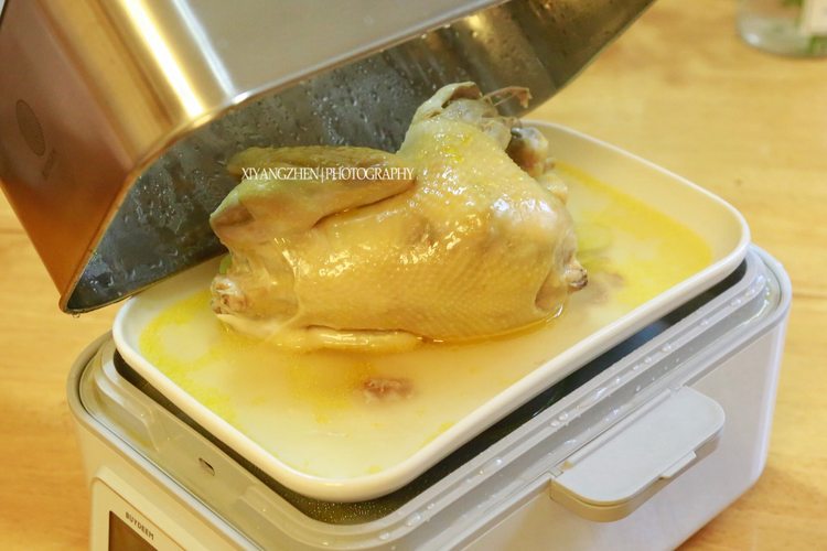 准备完毕就可以开始蒸了,我这里用的是北鼎蒸炖锅,加水至“最大”水位,开“蒸”档,定时40分钟。