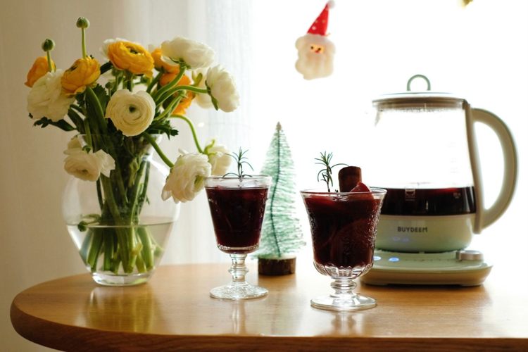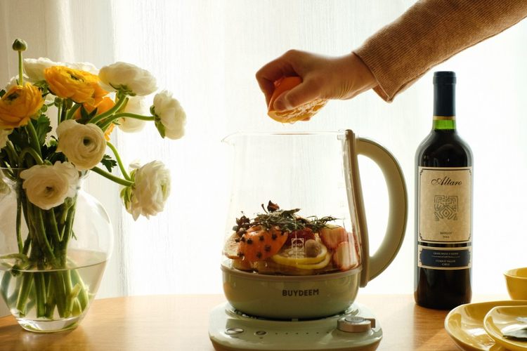 倒入一瓶红酒,养生壶选择水果茶模式,烹煮10分钟时间即可