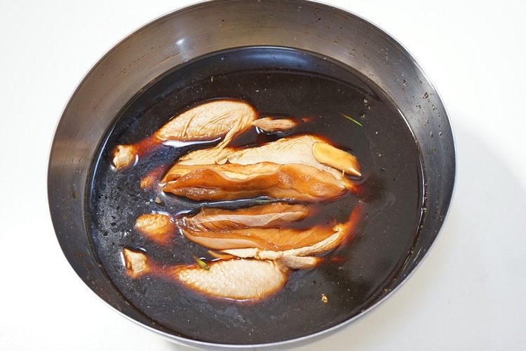 静置好的茶倒进去腌制两小时,中间记得翻面一次哦。如果怕第二天来不及的话可以提前一晚腌制,放冰箱冷藏室即可