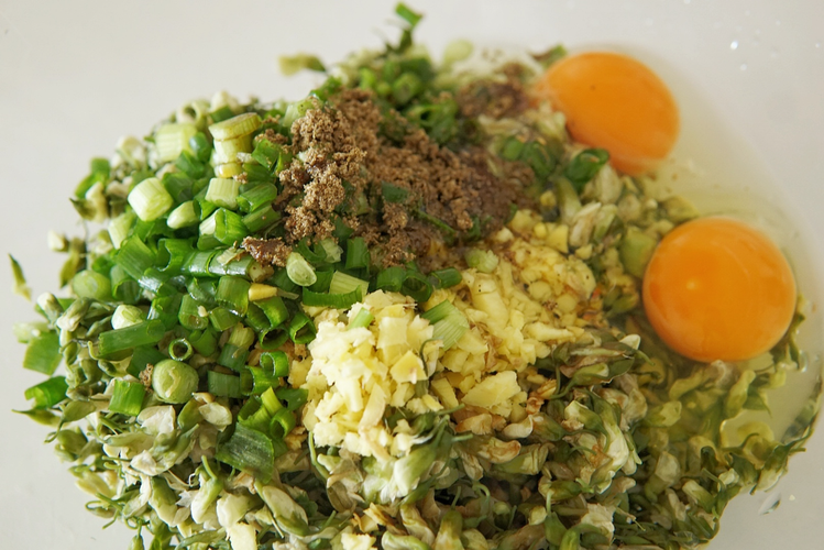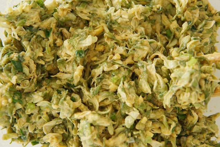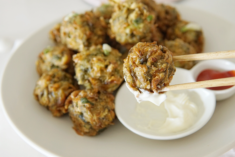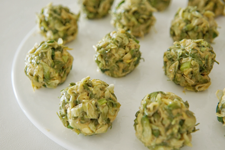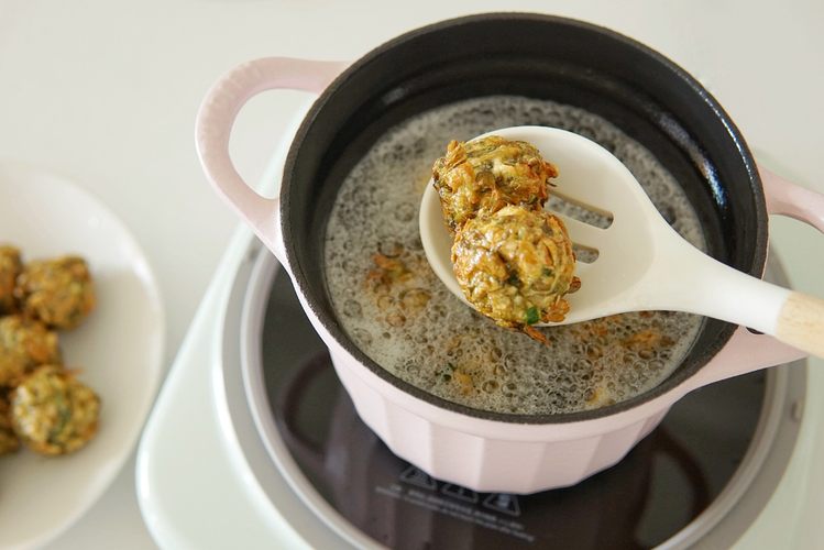 2、中筋面粉可以少放,能团成丸子的粘稠度就可以了,团得松一点,炸出来内里更松软。