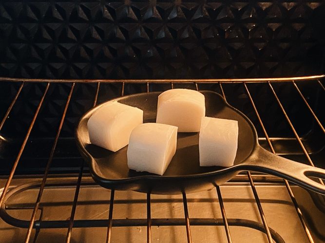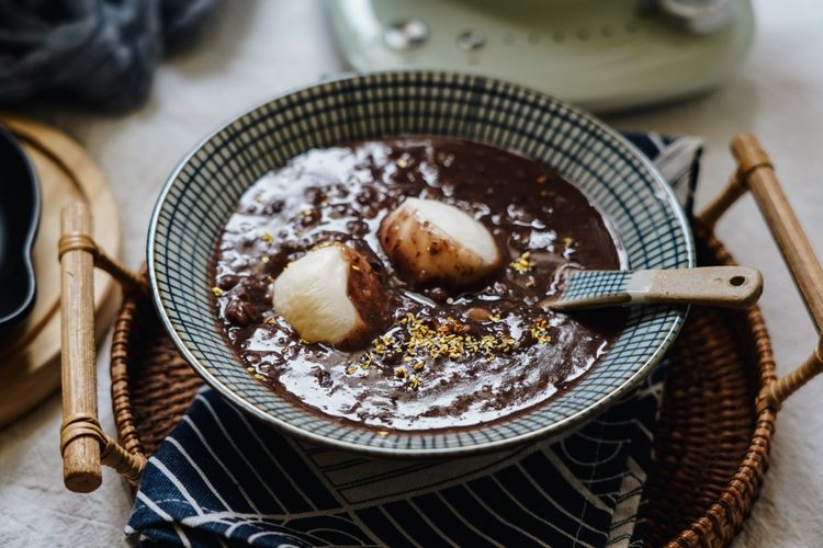 红豆汤里加入陈皮,清香暖胃,烤年糕外脆内糯,既可做主食也可做甜点。