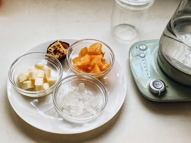 2、橙子去皮煮是为了避免有苦味,食用时放些鲜橙片可以补充VC哦