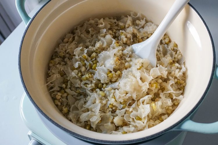 绿豆:清热、辅助降血脂、辅助降血压;薏米:清热祛湿;银耳:辅助降血脂、辅助降血压、扩张血管。快来制作健康的下午茶糖水吧~