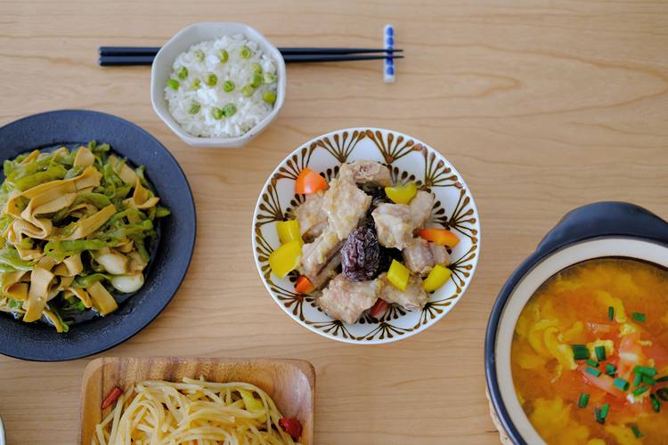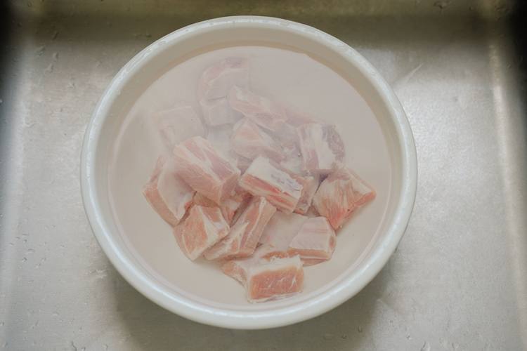 买回来的排骨先放水里泡到发白,中间换两次水。