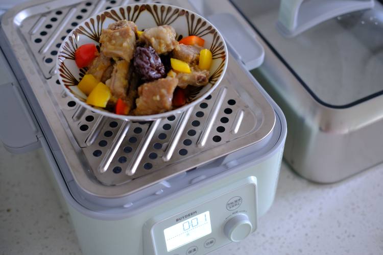 蒸炖锅蒸功能蒸30分钟。