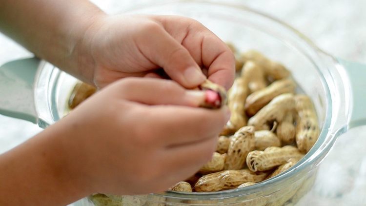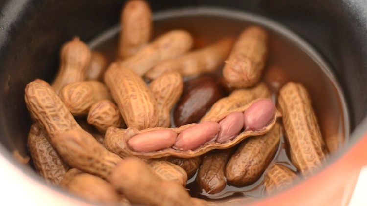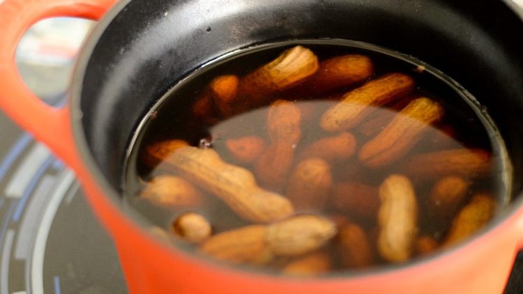 花生洗净泥土。