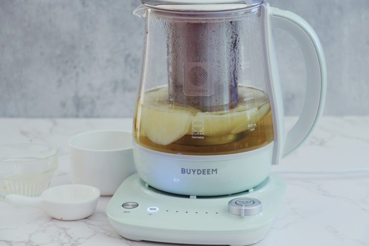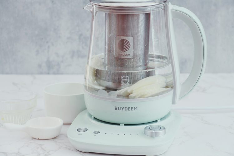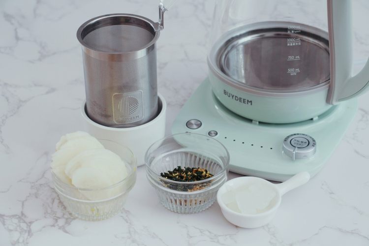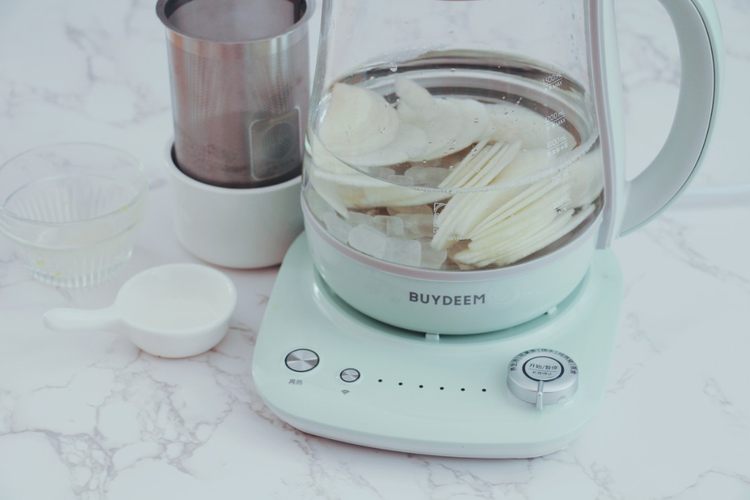 这道桂花雪梨乌龙茶喝起来味道温和,桂花的香若隐若现,雪梨的润清甜可口,茶的甘醇厚幽长,三者在养生壶的温柔煮制中达到了完美融合。花果茶的用料也很容易获得,在家或在办公室都很适合煮制。