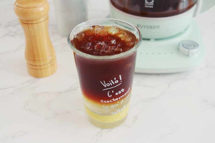 这道饮品的灵感来源于茶餐厅的饮料咸柠七。将咸柠檬换成新鲜黄柠檬使这杯果咖喝起来清新感更强。用料简单味道却不简单,夏日果咖菜单必须有它!