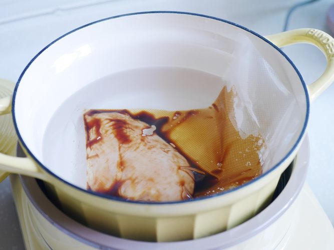 把密封好的鸡胸肉放到锅里,放入足量的清水,水没过鸡胸即可