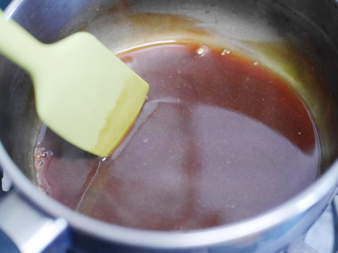 时间到后把鸡胸肉取出来,里面的汤汁倒入小锅里,加入淀粉煮至浓稠