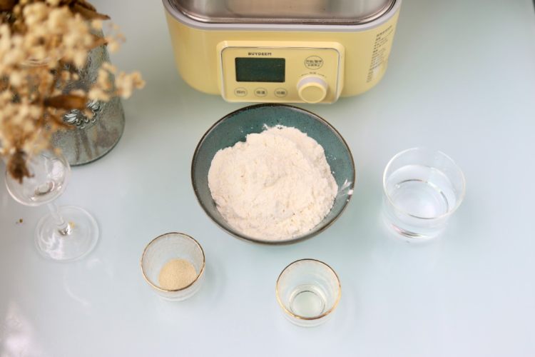 面团材料:中粉200克,常温水100克,油4克,干酵母2克