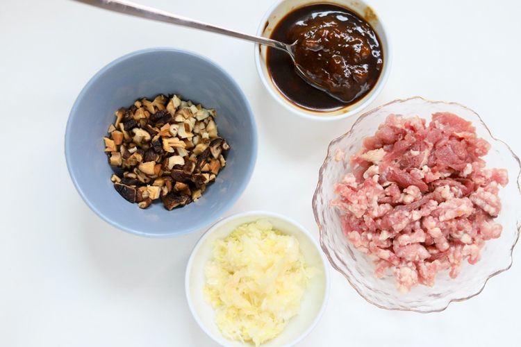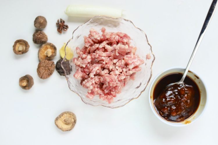 酱肉包:猪肉沫150克,肉片或肉丁20克,干香菇7个,大葱1段,八角1个,甜面酱半勺、黄豆酱半勺,蚝油半勺;酵母粉2克,白糖半勺,水适量,料酒半勺