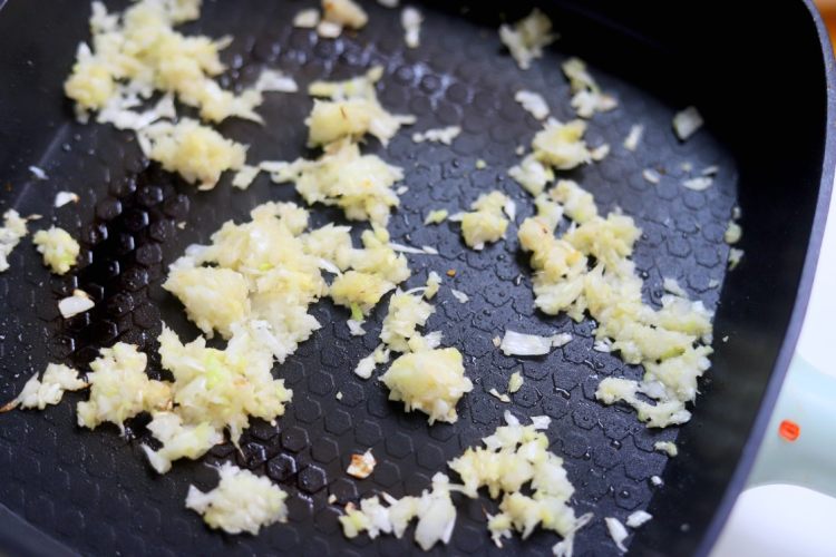 锅中放少许油,放入酱肉包的姜末和大葱碎炒出香味