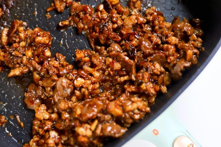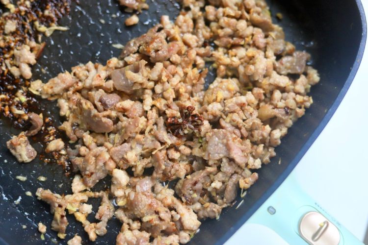 依次加入配料表的调料翻炒收汁,盛出晾凉备用