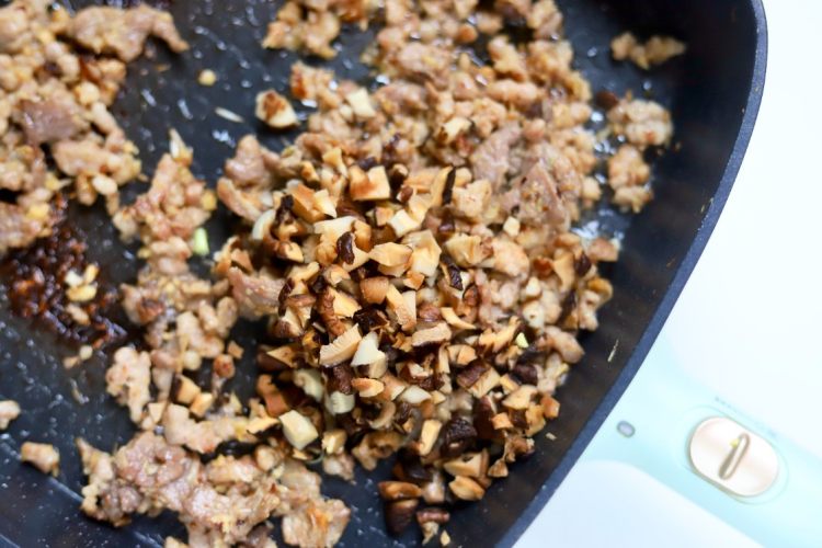 加入1勺料酒炒出香味,倒入香菇继续翻炒