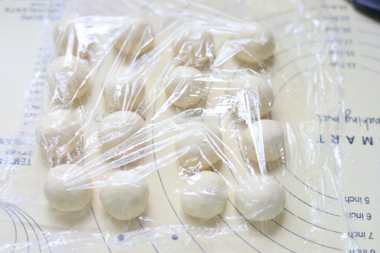 醒发好的面团取出,排气,分割成大小均匀的面剂子,我做的mini包子,面剂子约25克每个,喜欢大包子可以把面剂子分为50克每个