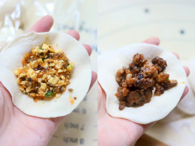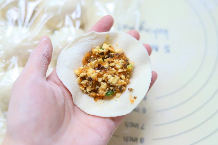 包入准备好的馅料,我每个包子大概放了15克的馅料,具体根据擀的饺皮要适当调整哦