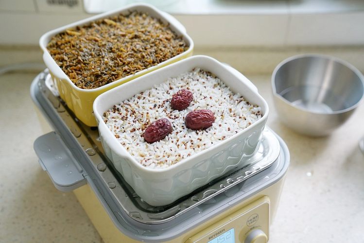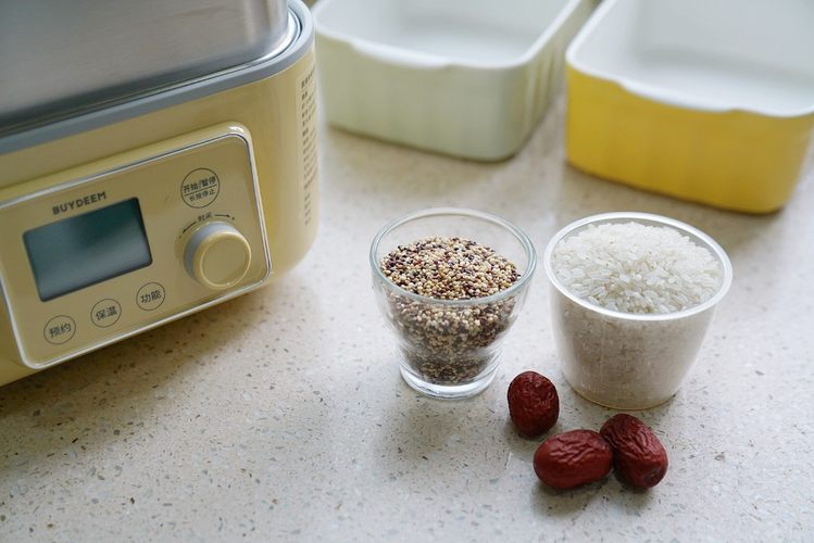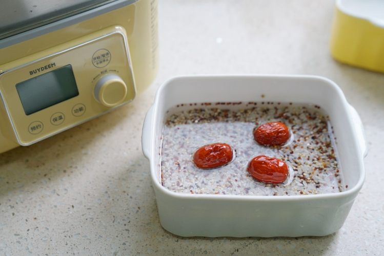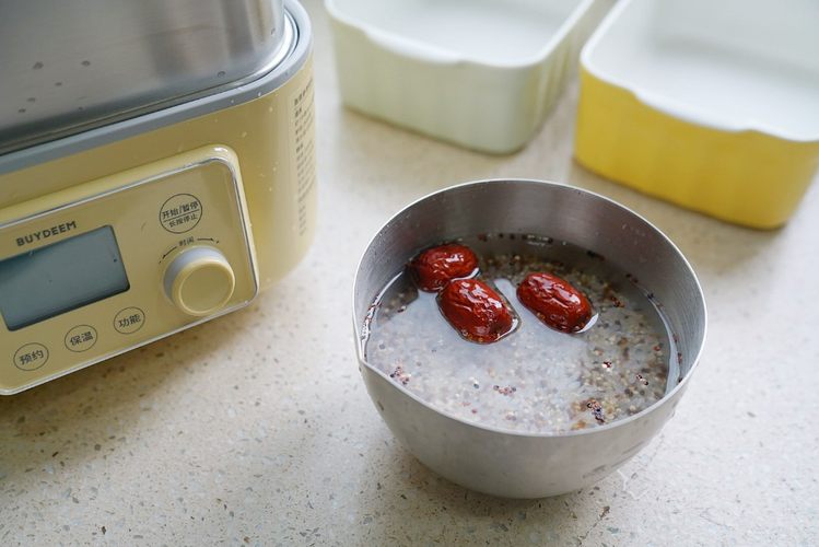 在准备蒸扣肉的时候,另外备藜麦50克,大米150克,清水140ml ,3粒红枣