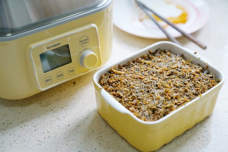 50分钟后,厨房里的香味巨赞啦,开盖一看粒粒松散又饱满的藜麦米饭,还有那经典的梅菜扣肉都妥妥出现在我们眼前啦