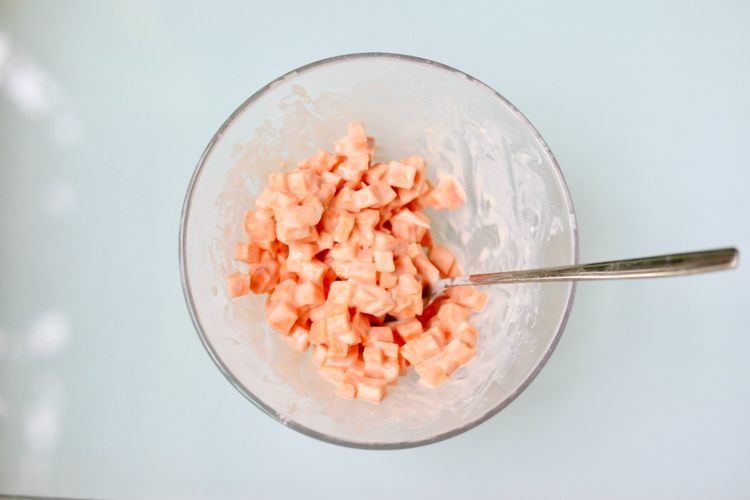 2、牛奶不要一次性倒入,留少量调节湿润度,保证面糊比较粘稠,刚好能均匀紧密裹住红薯丁比较好