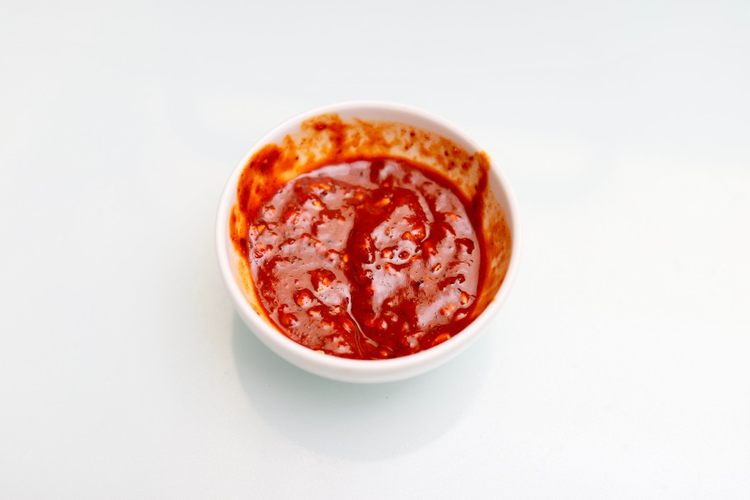 烘烤期间调制风味酱汁:辣椒粉+韩式辣椒酱+蒜末+酱油搅拌均匀(如果比较干可以加一汤匙清水调匀)