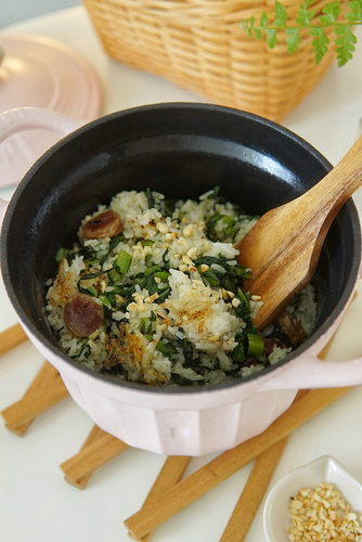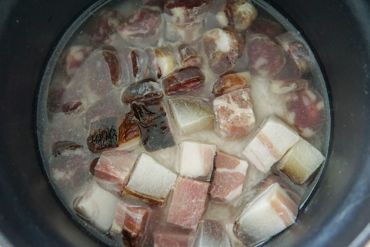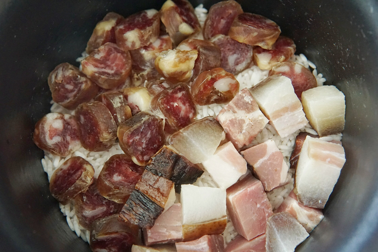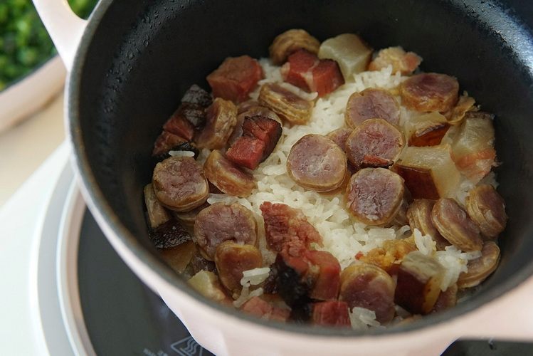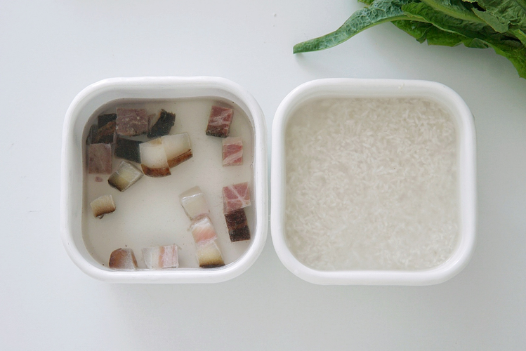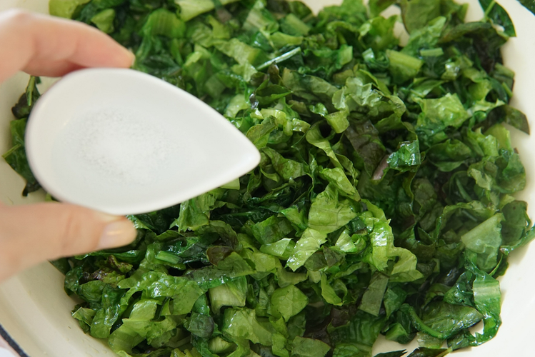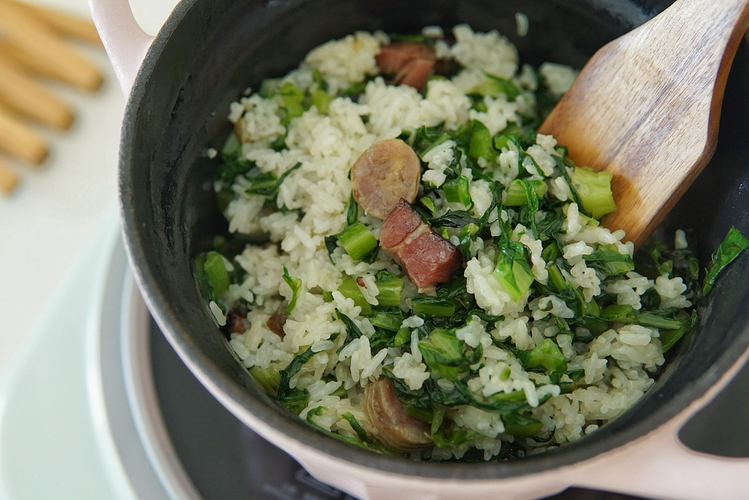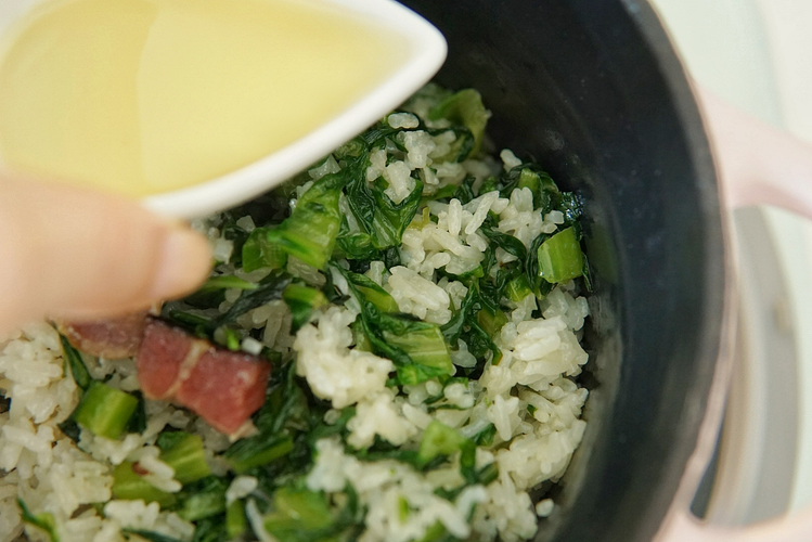 米饭里的咸肉自带咸味,所以炒叶菜的盐不要放太多哦