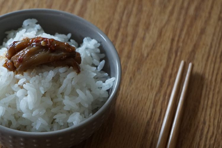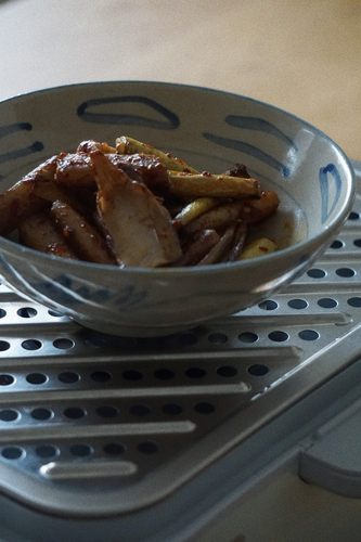 蒸炖锅工作结束后,取出蒸碗即可。蒸到软哒哒、没了型的芋头花就可以了,如果没有到这样的程度会有麻嘴的感觉。滋味丰厚,具有异域气息的芋头花配白米饭正好