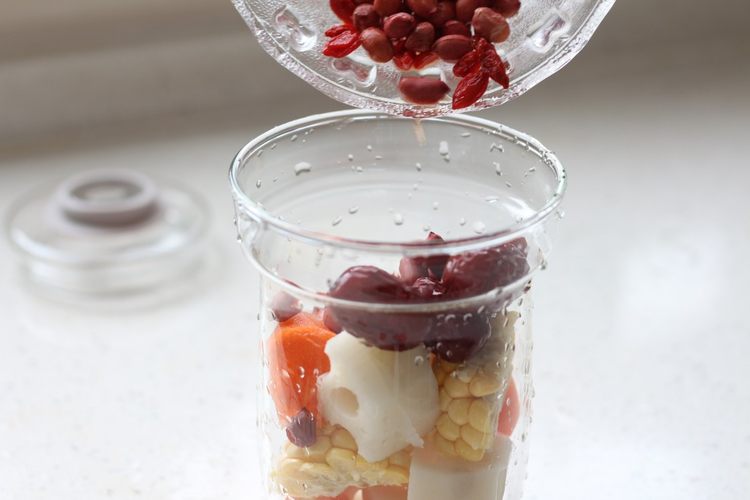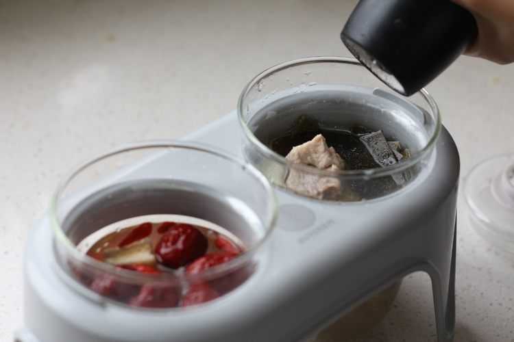 放入一个玻璃炖盅,加适量的水,完成,就是这么简单