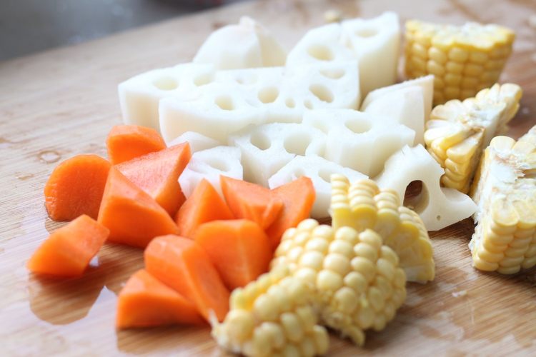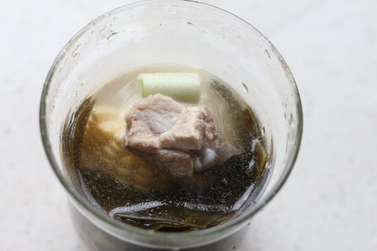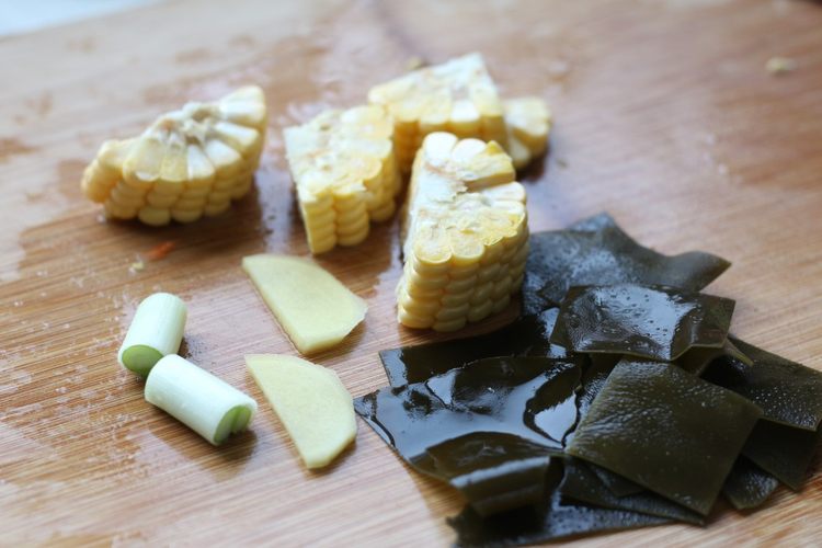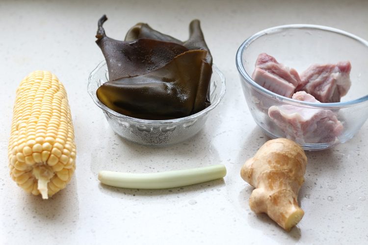 再来看一下给宝宝准备的排骨汤材料,海带要提前浸泡,排骨多冲洗几遍