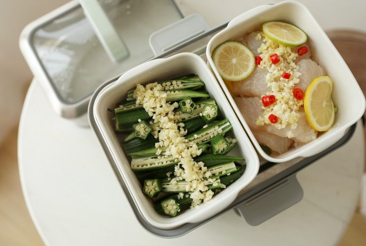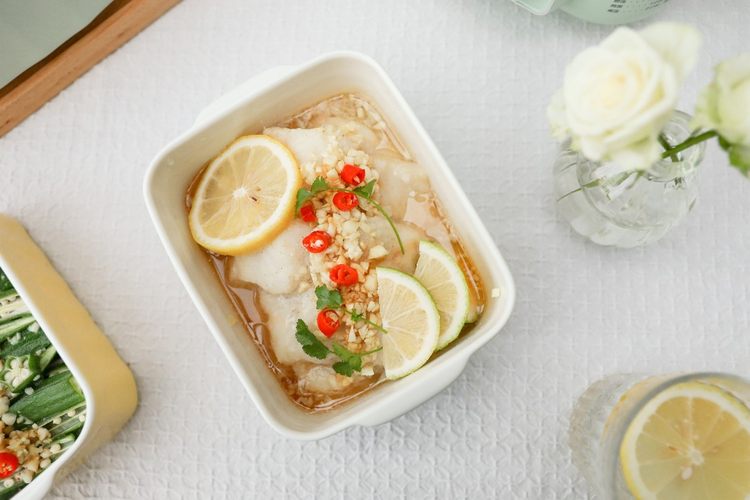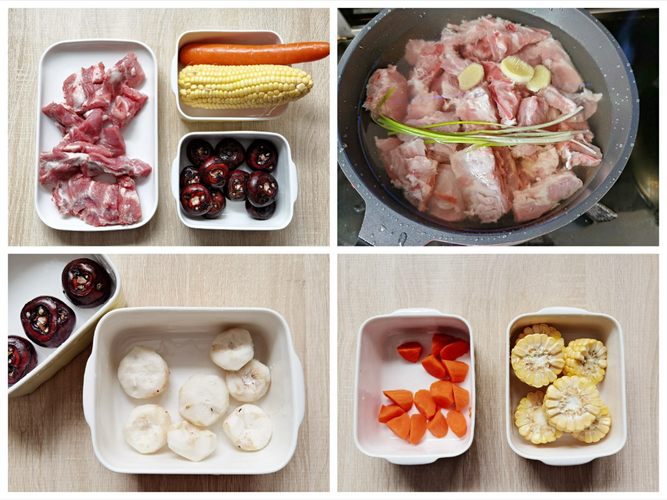 马蹄玉米排骨汤+泰式柠檬蒸龙利鱼+蒜蓉蒸秋葵