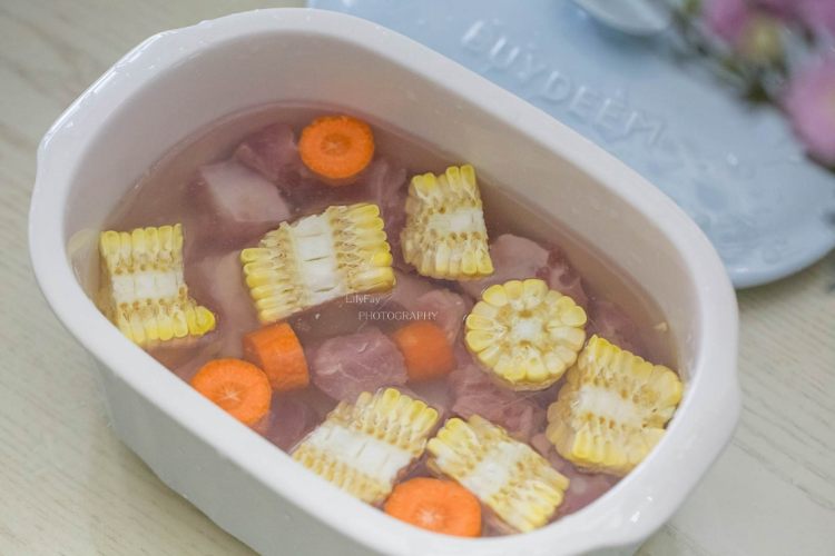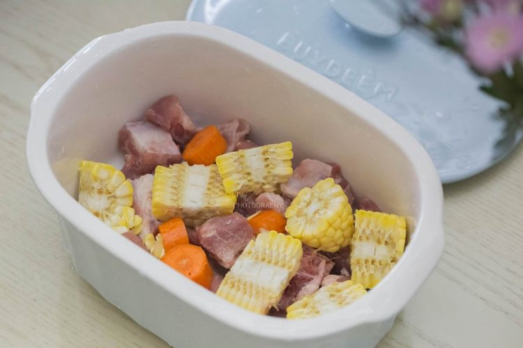 胡萝卜玉米排骨汤+梅肉+金针菇+面点