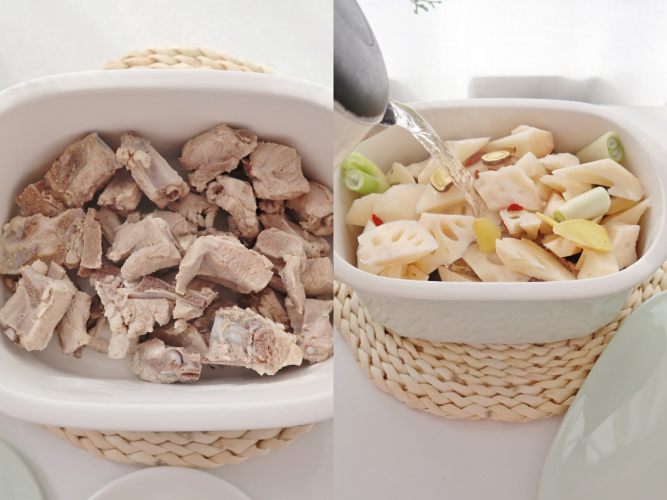 1.排骨需凉水下锅,盐不能早放,排骨易熟,出锅前20-30分钟再放盐,白胡椒粉调味