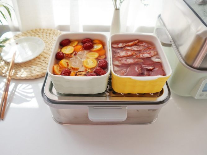 4.蒸炖过程如果时间比较长记得从注水口加水