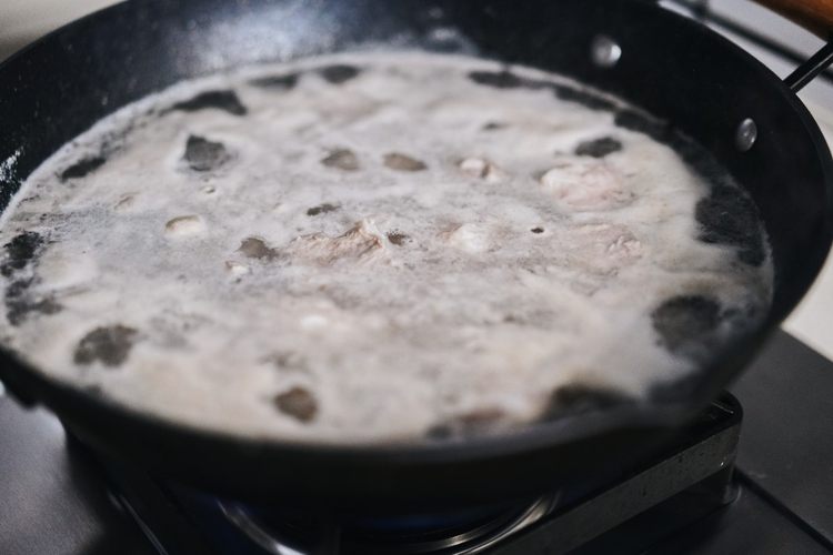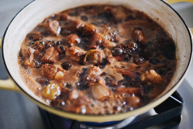 盖上盖子中火煮开锅,转小火,全程煮45分钟左右,中途打开盖子加盐调味即可,最后看一下汤汁,汤汁还比较多的话就中火收一下汁